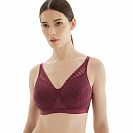 Поверх гладкой чашки, которая придает бюсту красивую округлую форму, проходит кружевное полотно с орнаментом в горошек, имитирующее бралетт. Завышенная линия декольте, высокая пройма и широкая спинка, которая у застежки становится выше, а также кружево, заходящее на бретели, скрывают возможные неровности и гарантируют безупречную посадку.